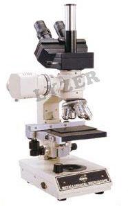 Fitted with binocular head asembled from hard coated prisms. Bright field horizontal 12V/50W illumination with iris diaphragm and slots for dropping filters,seperate camera port for photomicrography, providing magnification from 50x to 1000x, Quardruple ball bearing revolving nose piece, special graduated triple layer co-axial machanical stage for X-Y movement , with variable light intensity control transformer built in the large sturdy base, with plywood carrying cabinet.