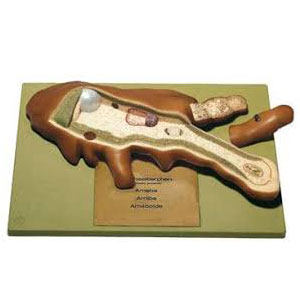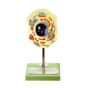 This model restricts to the presentation of the generally important structures of an animal cell Nucleus, endoplasmic reticuum, mitochondria, ribosomes, golgi apparatus and centrioles illustrate the principal of segmentation of this smallest unit of life. Scope : common study of the cell. In one piece on a stand with base. |