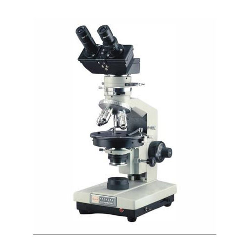 With tripple revolving nose piece, co-axial coarse and fine motion, circular stage, rotatable in 360 degree, graduated with vernier reading up to 0.1 degree with provision for centring by two knobs located just belowthe circular stage,polariser with swing out system. Compact analyser head having iris diaphragm, Bertand lens, Analyser rotating ring and half/full wave compensator with following optical combination:-